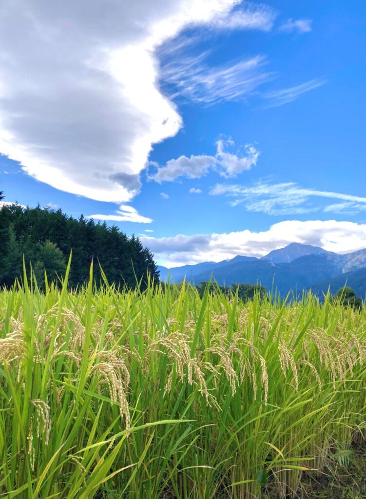 北杜の美味しいお水と澄んだ空気、たっぷりの陽を浴びて育った稲です。